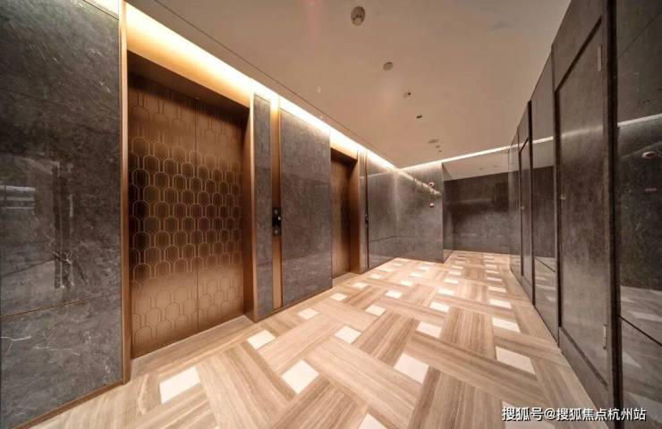 除此之外,项目还有地下车库空间实景呈现,未来业主地库入户大堂、电梯厅等都高质量打造呈现,品质感十足!星空顶设计感相当惊艳,地下入户大堂及电梯厅的木纹拼花地板足见其设计团队的超高审美!