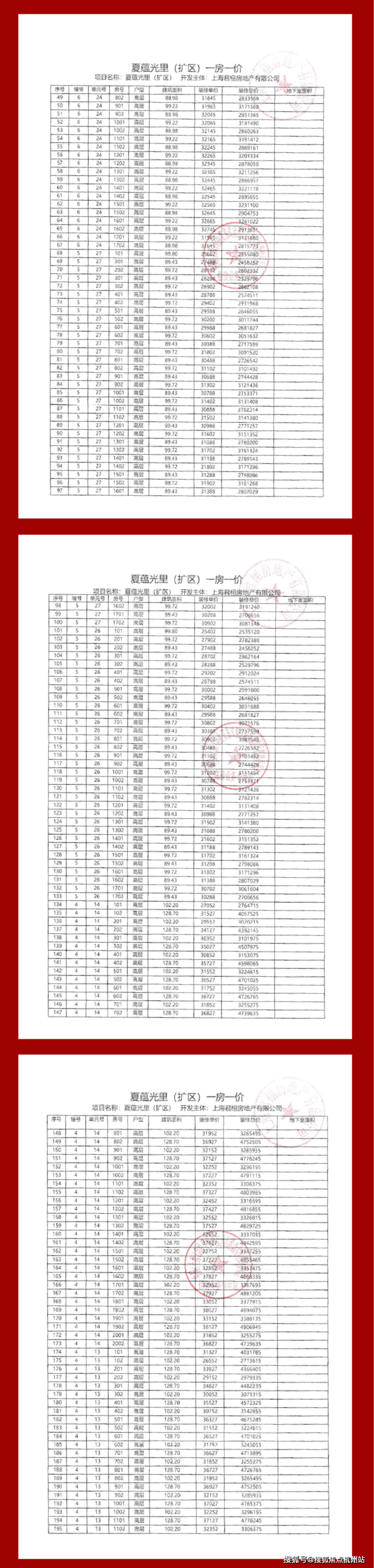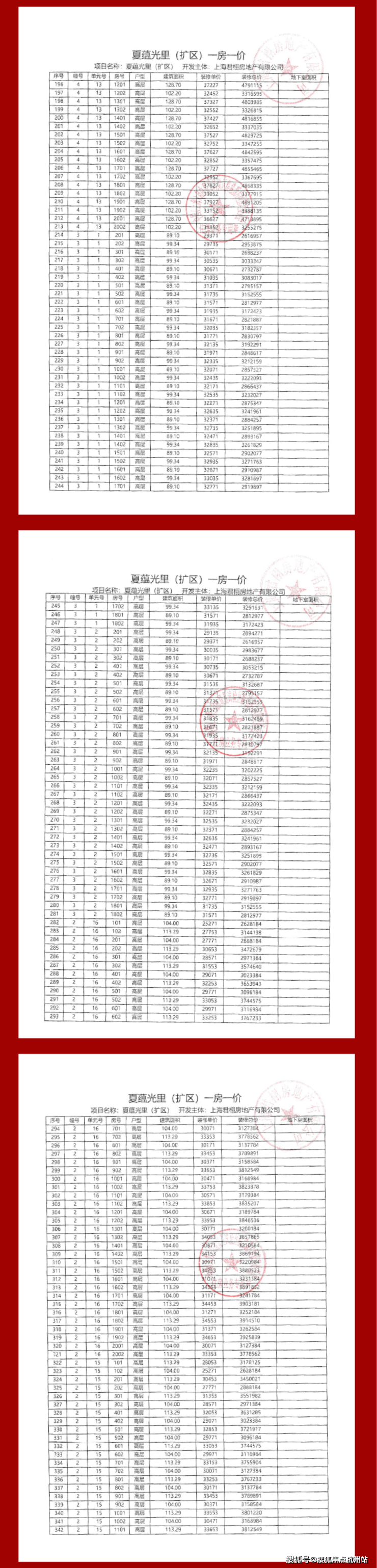 项目一房一价表