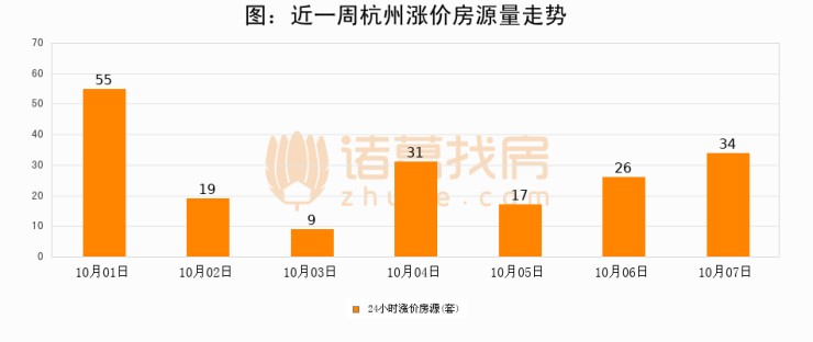 根据诸葛找房数据显示,杭州24小时涨价房源量为34套,较10月06日增加8套,环比上涨30.8%。与此同时,涨价房源占比小幅扩大,业主信心有所提升。
