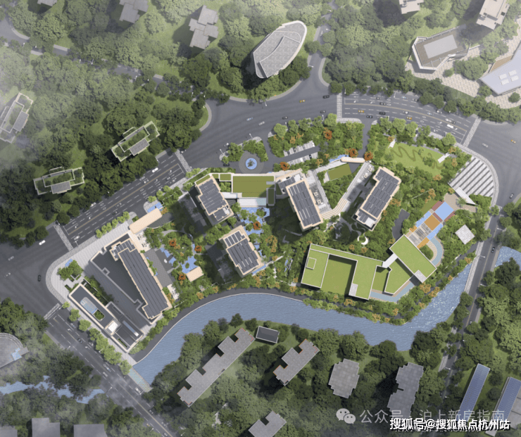步入社区的第一重仪式感,始于社区整体抬升约1.3-1.4米的“玉盘托珠” 格局。设计师以精妙的地形重塑,将河道景观化为私家长廊,形成天然的视觉屏障与观景台。