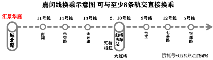 而通过直线距离仅约200米的嘉闵线城北路站(在建),3站可达南翔,8站可达虹桥!