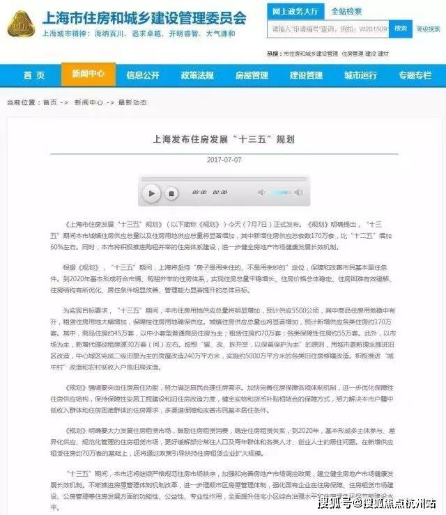 紧接着,就在7月7日上海又公布令人耳目一新的大消息,《上海市住房发展“十三五”规划》。