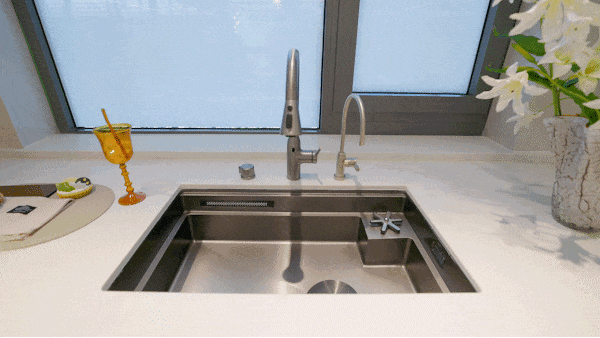 多功能水槽龙头轻松切换用水模式,滨特尔前置过滤器+末端直饮水+中央净软水机,全屋净水呵护家人饮水健康,还有线形凉霸默默为烹饪者送来清凉!
