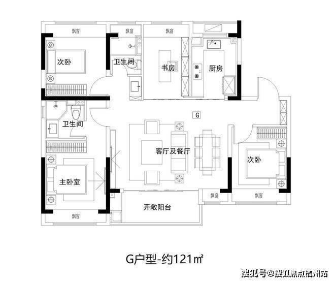 建面约121㎡ 4房2厅2卫,宽境4房,拓宽空间尺度; 大开间、进深短,通透采光;主卧独立卫浴,优雅随心的寝居感受。