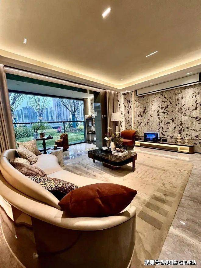 设计理念:自然融入生活:整体采用现代简约风格,搭配大面积落地玻璃,将室外的绿植景观引入室内,阳光透过玻璃洒在浅色调的接待区,既通透又显温馨;售楼处外还打造了约800㎡的景观庭院,设有休闲座椅和四季绿植,到访客户可在庭院中漫步,提前感受社区的居住氛围。