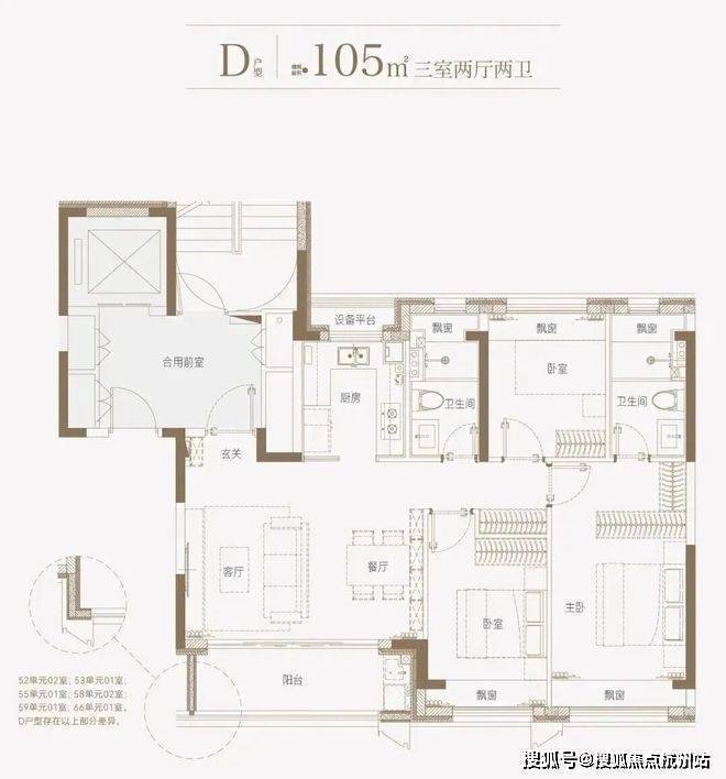 边套的餐厅、主卧和次卧,设置有多个270°全景飘窗,室内通透明亮。