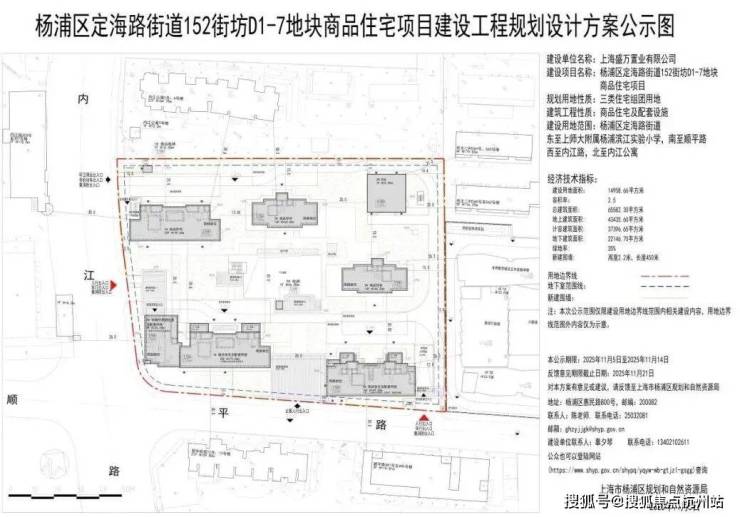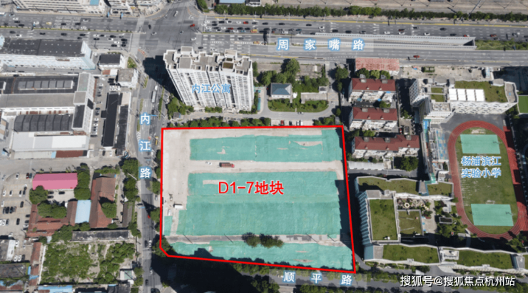地块东至上师大附属杨浦滨江实验小学,南至顺平路,西至内江路,北至内江公寓,出让面积14958.66㎡,容积率2.5。