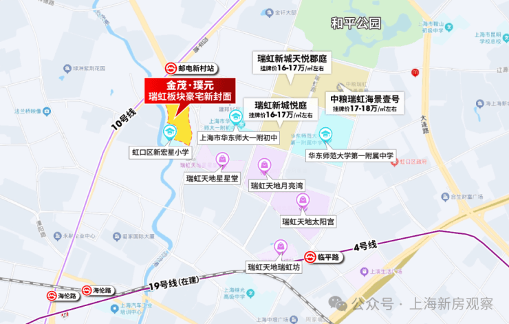 再看二手房,瑞虹新城板块次新房挂牌均价在10-18万/㎡不等,整体上越新的房子越贵,比如瑞虹6789期目前挂牌普遍在15-18万/㎡。