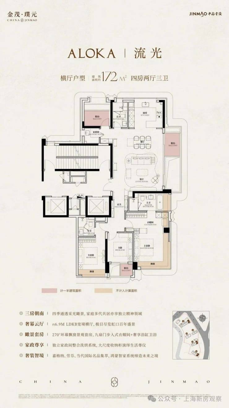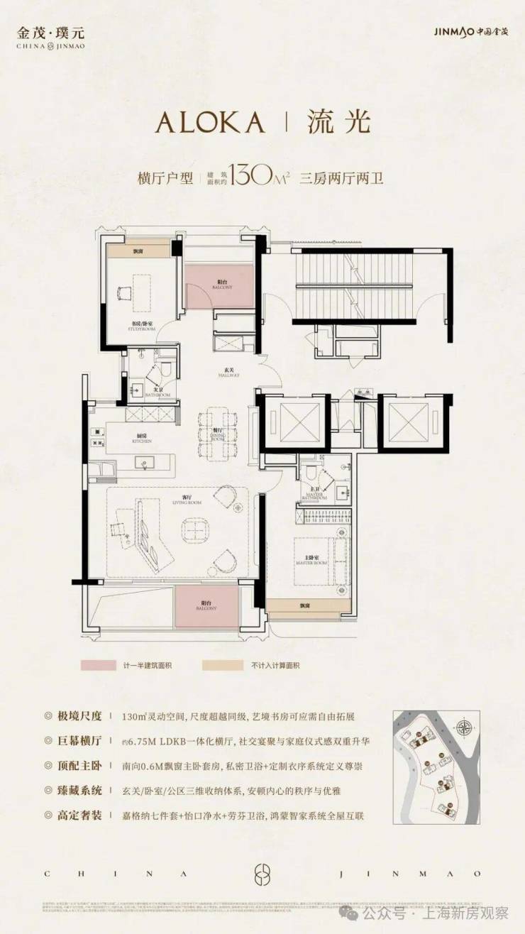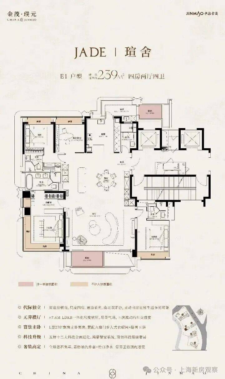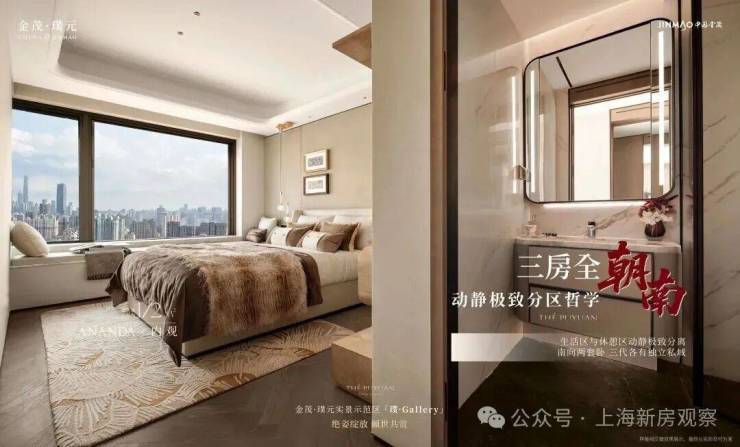 据悉,产品体系,金茂上海第一个TOP级「璞系」+「科技住宅」作品,最快4月底展厅,6月份样板间,7月底首开,9月份实景示范区(会所等)开放。