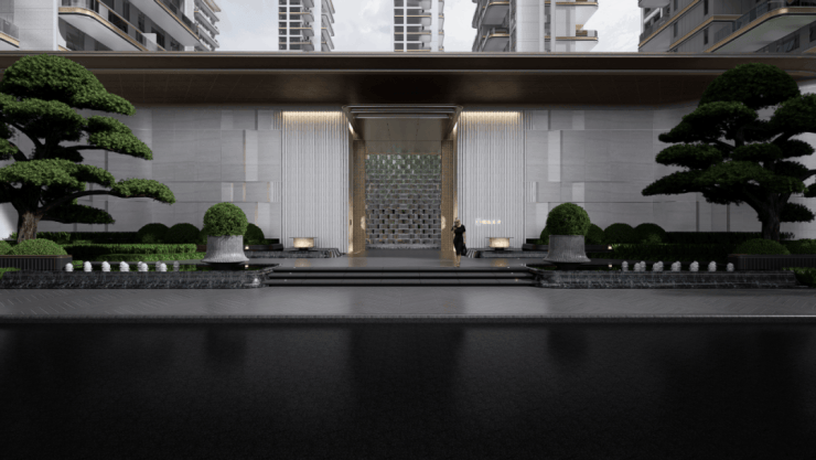 而且金茂·璞元采用了首层全架空设计,最高约8.3米的架空层层高,让整个社区的首层演变为无界庭院,身处其中,你可以轻易将社区内核心景观视野,尽收眼底