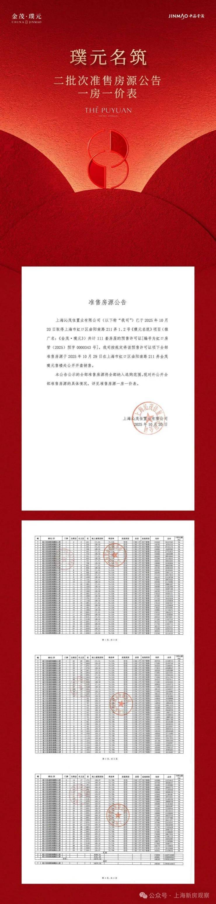 最新消息!上海2025年首个地王“瑞虹地王”金茂+庆隆瑞虹项目正式定名「金茂·璞元」首开售罄!三期建面约200㎡4房;均价16.81万/m²,总价2800-3670万!一梯一户,得房率82-85%,高隐私、空间感强;售楼处线上火热预约中!