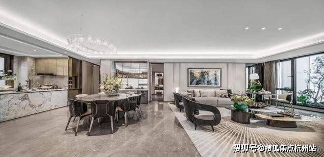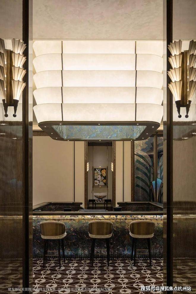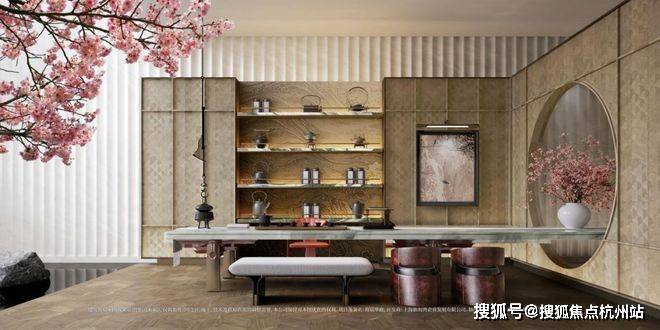 以玉兰门庭—迎归大堂—莳花荟为主轴,敬献步履生辉的归家艺旅:玉兰门庭如繁花盛绽,尊华瑞鳞水景聚运生财,双尊铜狮镇守家宅;迎归大堂流转光影艺韵,百羽栖澜艺术雕塑、芦海宸韵非遗绣作流淌摩登气韵;莳花荟中央会客厅移步异景,献映会客、休闲等雅会。