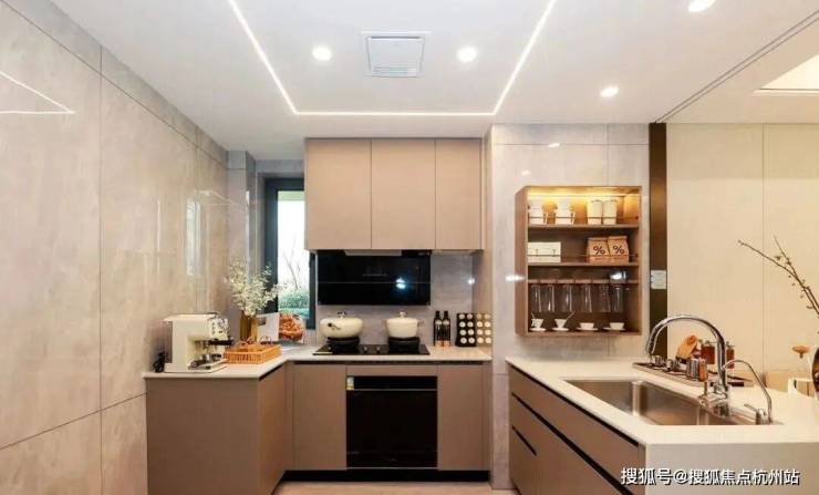 关照东方家庭的饮食习惯,科学规划厨房的空间功能,为家庭料理打造流畅的操作动线。半开放式厨房,不仅可开窗通风,同时精选方太品牌高端系三件套,预装全自动的嵌入式洗碗机、超强吸力的抽油烟机和易清洁的安全燃气灶,有效解决中式烹饪的油烟烦恼。考虑到夏天气温炎热,厨房吊顶预装凉霸,让厨房清爽降温。