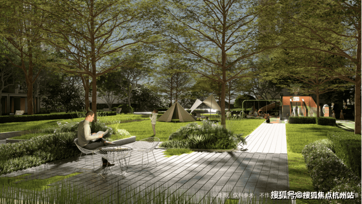 温润木质的瞭望台、微度假卡包空间、条石分割的秩序草阶组团呈现多功能共享空间,主题聚餐、生日Party、户外影院、演艺活动……满足全龄段业主潮流追求