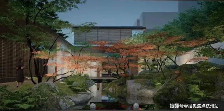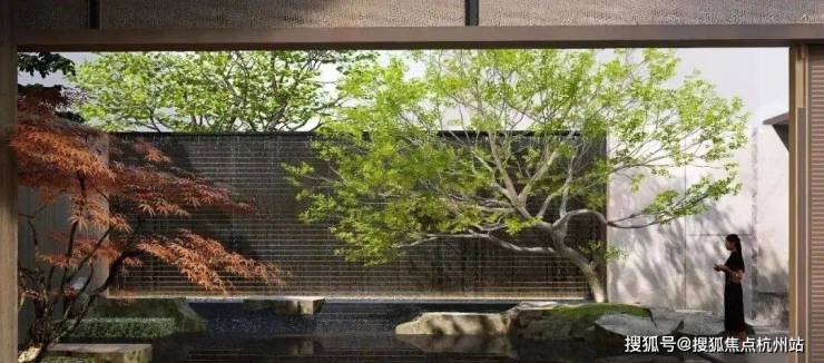 一进院:社区门口的6米宽瀑布景墙+落石+大乔组合,构筑起一道天然噪音屏障,进入瞬时隔离城市喧嚣!