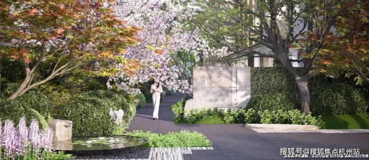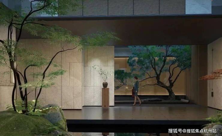 三进院:来到社区中央,18米宽的中心景观轴,搭配景观水池与疏密乔木,形成极简却又不失典雅气质的主景观花园!