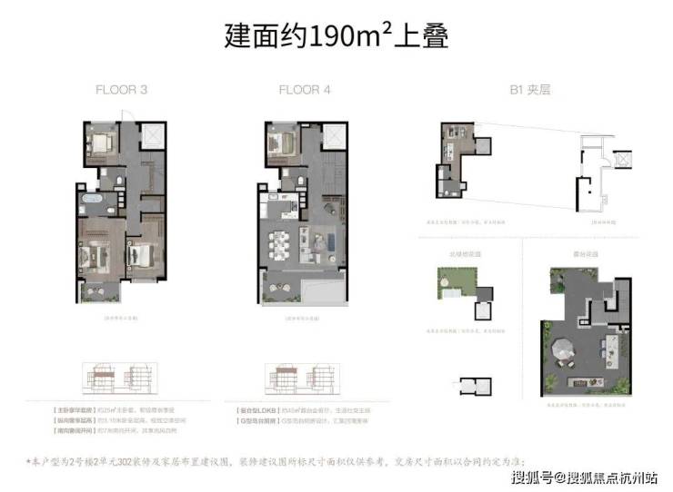 在所有叠墅户型中,下叠往往是更具“墅感”的,我们以主推的建面约200㎡下叠产品为例,来解析一下这个产品: