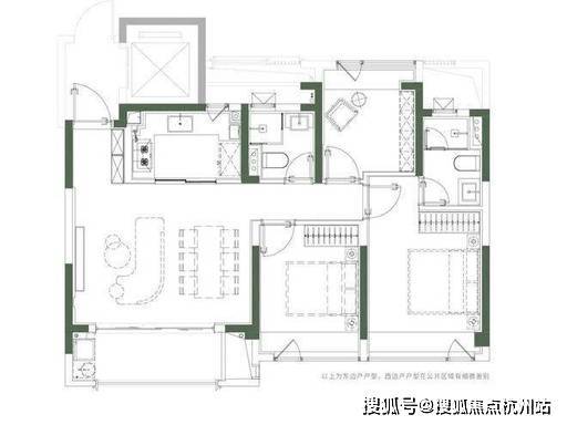 建面约 100㎡三房两厅两卫 H 户型,是首改群体的明星户型,整盘仅 16 套,稀缺珍贵。户型做到四开间朝南、全明通透,南向面宽达约 12.4 米,客厅 + 三卧室全朝南,阳光充沛,视野开阔。LDK 一体化设计,客餐厅衔接宽景阳台,空间延展性强,日常居家休闲、亲子互动空间充足。客厅与相邻卧室墙体可拆除改造,轻松打造约 6.5 米面宽横厅,适配不同家庭需求。主卧独立套房布局,配置独立干湿分离卫浴与观景飘窗,私密性与舒适度兼具;两个次卧空间尺度合理,可作为儿童房、书房或老人房,完美适配三口之家、二胎家庭居住需求。