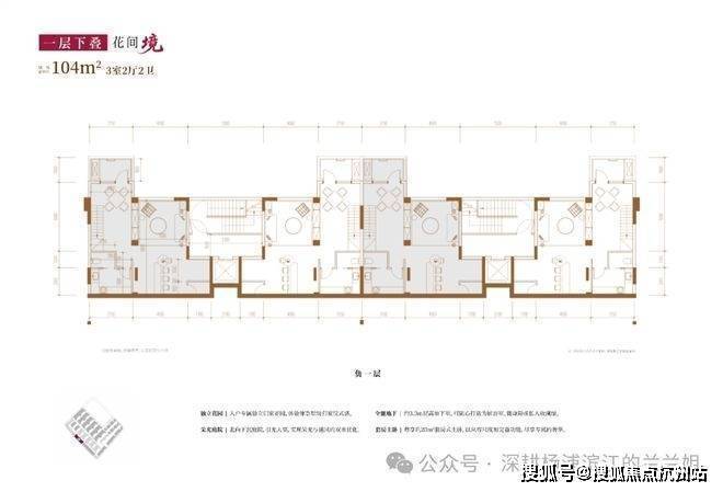 建面约104㎡3房2厅2卫(一层下叠)