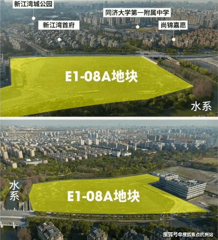 E1-08A地块位于新江湾城北侧,直线距新江湾城站约1.2公里,地块容积率仅约1.1,限高约20米,预计将是洋房和联排的组合。其土地面积约5.71万㎡,建筑面积约6.28万㎡,出让总价为37亿元,折合楼板价约5.89万/㎡,住宅套数下限为455套。