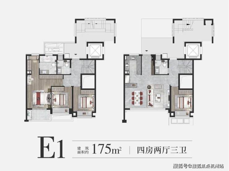 遵循大客厅原则,上下叠产品都做到了大横厅布局,同时叠墅的上下两层都做到了三开间朝南,合起来就是“一墅六朝南”的生活格局。二层的主卧套房包含了衣帽间、独立卫浴等功能,媲美行政套卧的舒适尺度和享受。