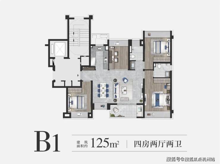 约125㎡4房2卫户型是约99㎡的升级版,四房更能保障业主的全生命周期需求。