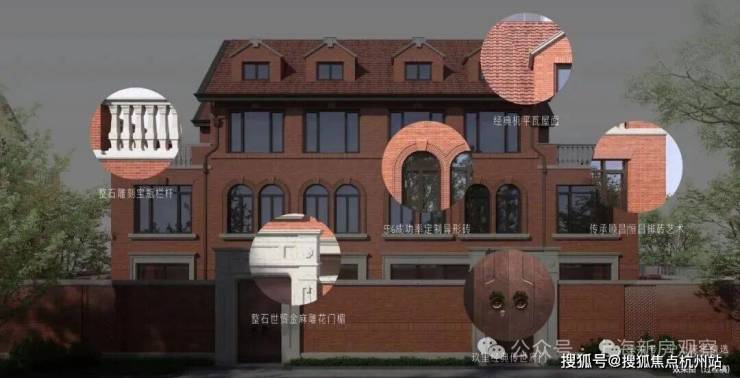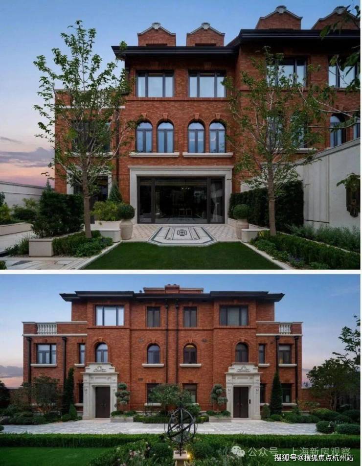 建筑基层石材选用近拟传统皇家建筑所用金山石的世贸金麻,经手工凿毛、酸洗做旧处理,搭配铜质落水管、水纹压花玻璃,每一处细节都在诉说海派大宅的优雅与贵重。