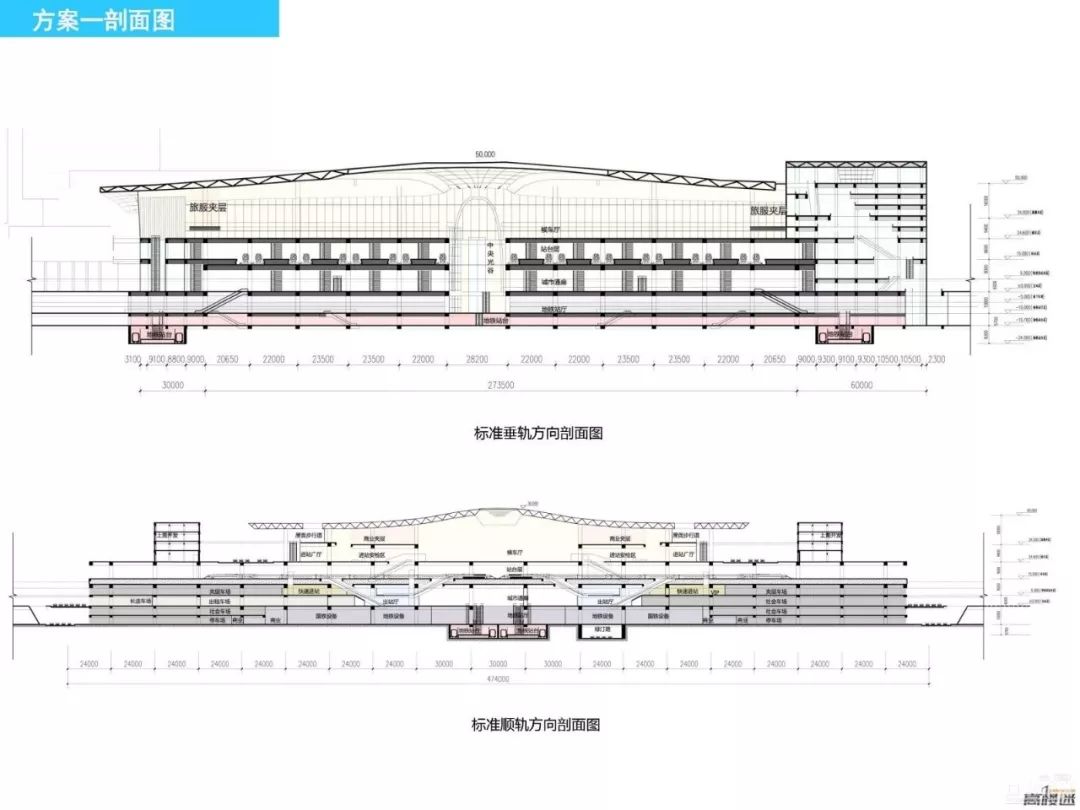 西站标准垂轨及顺轨方向剖面图