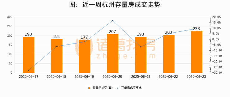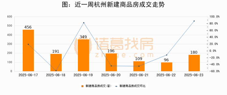 【杭州成交日报】06月23日新房成交180套、二手房223套;涨价房源20套