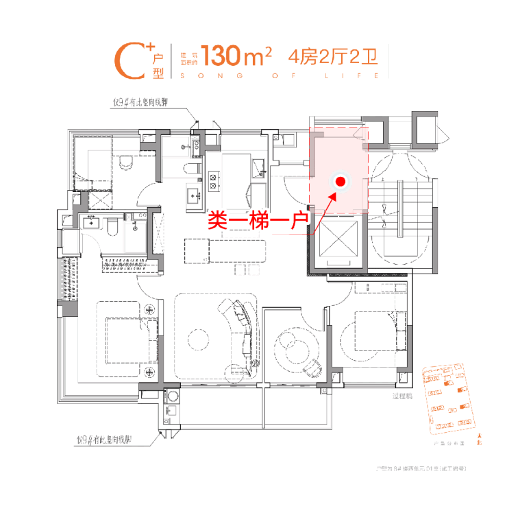 ③、建面约130㎡4/2/2,130㎡的尺度,165㎡的体验