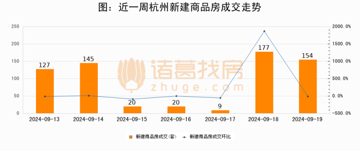 【杭州成交日报】09月19日新房成交154套、二手房156套;涨价房源36套