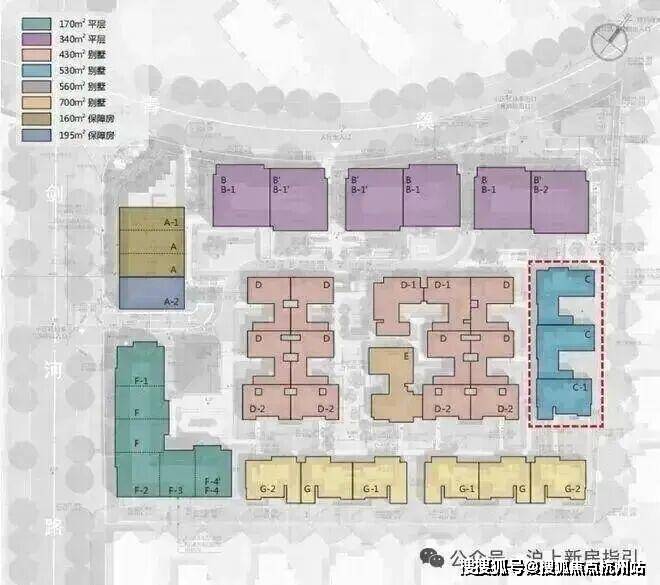 其中1#为保障房,12套建面约160-195㎡户型。