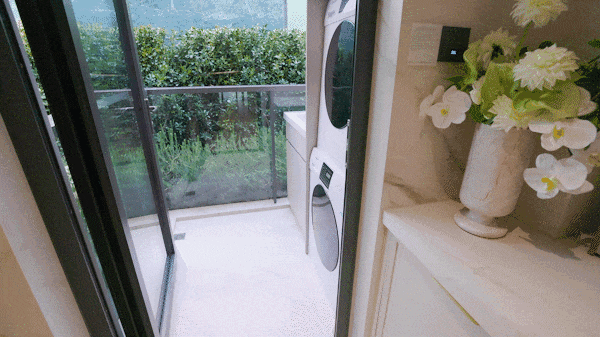 尤其是与卫生间相连的设备间,让浴室这个湿区被巧妙延伸,洗衣、家政动线就能与起居空间完全分离。幻想一下,洗完澡你再也不用抱着换洗衣服,横跨整个房间了。
