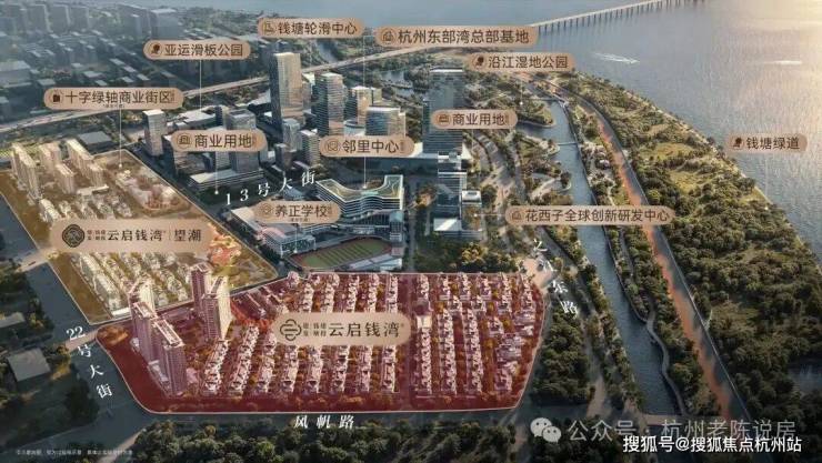 按照官方发布的规划信息,“金沙嘴板块将结合其生态海岸带的良好生态环境,以及区域内的轮滑馆、滑板公园等后亚运场馆资源,通过超级十字打造,配套引入高端的国际学校、医疗中心、商业项目等,同步提升交通、娱乐等设施,打造具有国际特色的金沙嘴高端生活区。”(来源:钱塘发布)