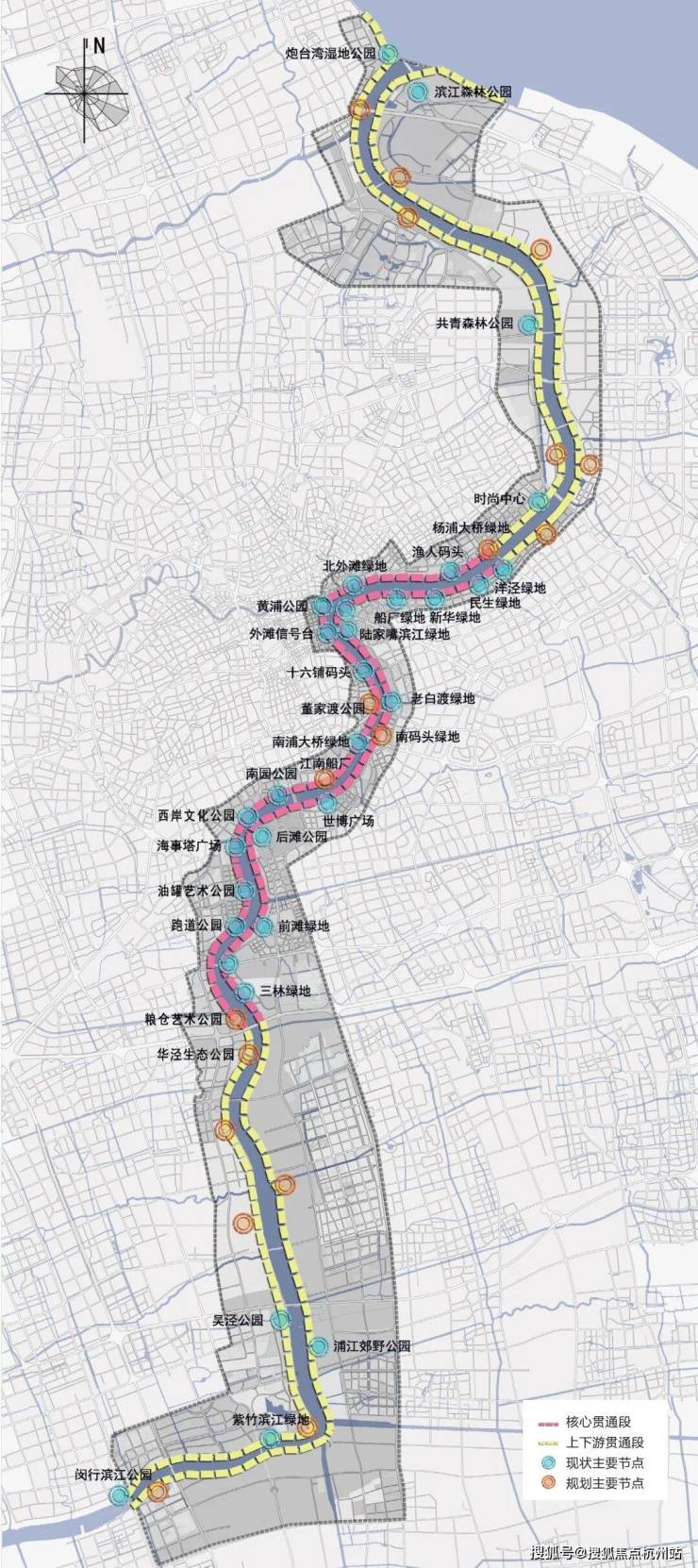 在《黄浦江沿岸发展建设规划(2018-2035)》有明确的规划范围定义: 即杨浦大桥至徐浦大桥,总计45公里的两岸岸线,目前已经贯通。