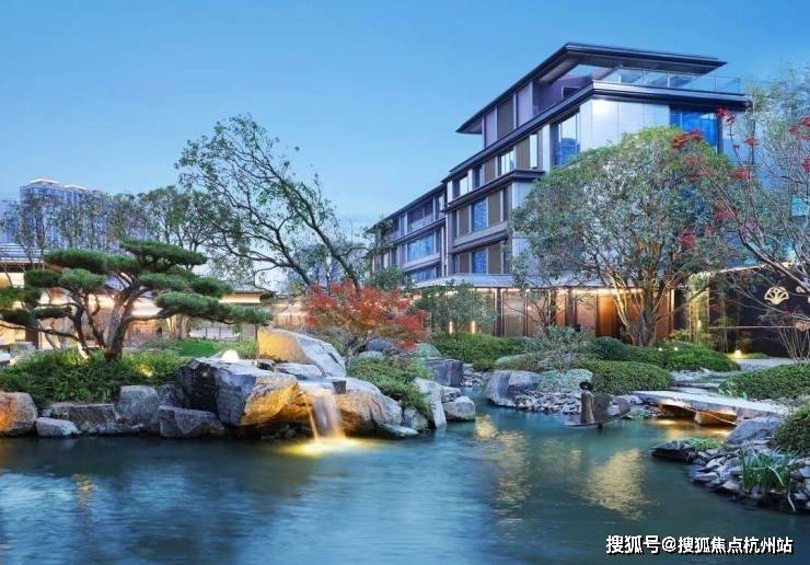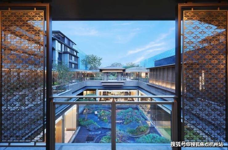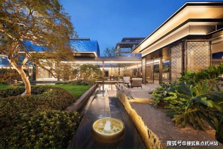 ▍出门即城市,步行即公园,咏月望庐是杭州在售的一线水景房中,难得的直面水岸,中间甚至没有车行道路分隔的项目,交叠的露台、院子和超高地下室,将白鹭、睡莲和绿洲一并“私藏”。