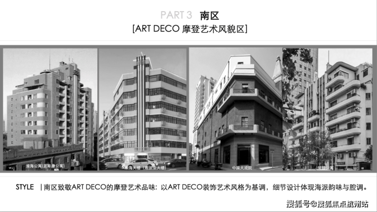 首先是建筑风格方面,项目致敬万国建筑博览群,采用ART-DECO摩登艺术风格。