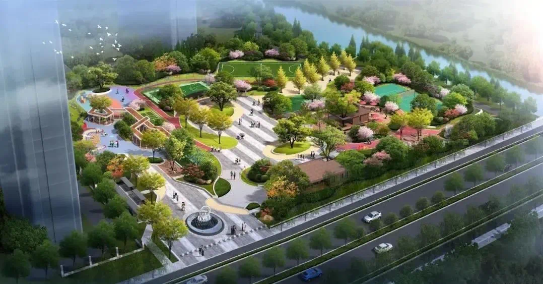 项目位于临安区长桥路以西,苕溪北侧,设计总面积为9972平方米;两侧入口为花坛组团,形成流线形入口景观。为满足功能需求布置公厕,运用绿道串连条状景观,绿道运用樱花做装饰,形成樱花廊带。项目于2020年11月开工,计划2021年8月完工。