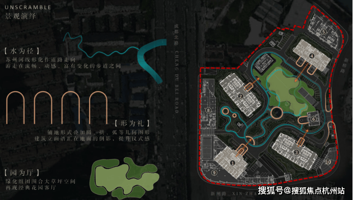 并借鉴海派大都会园林的的摩登、精致、艺术、惬意之精髓,以水为径、以形为礼、以园为厅,打造情景交融的塔尖圈层社区场景。