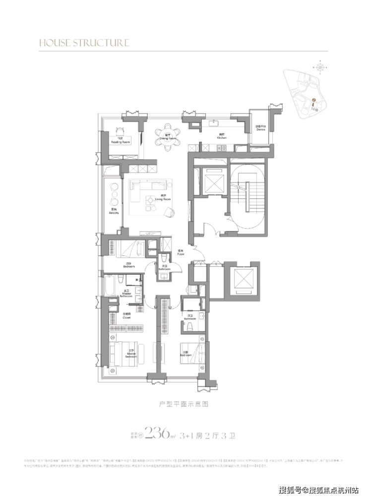 236㎡4房:总价约3580-3750万