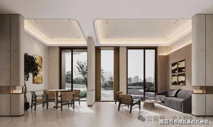 室内设计,秉承摩登东方的理念,设计以人、生活为中心,从空间本体和情感层面都回归生活,270度环幕采光,开放式会客厅设计,兼具尺度感与功能性。