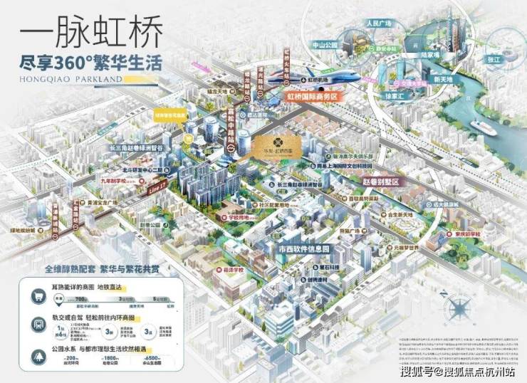 更值得一提的是,17号线不仅是通勤线,更是串联起青浦未来的“黄金发展轴”。它东起徐泾北斗产业基地,西至金泽华为研发基地,而中部核心节点,正是项目所在的赵巷市西软件信息园。这条轴线承载的,是青浦乃至整个大虹桥的科创未来。