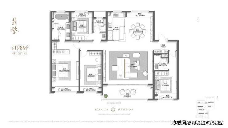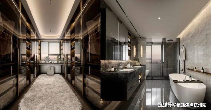 【豪门之奢】国际一线 进口奢装高奢:厨电卫浴欧洲原装进口,卫浴(劳芬/当代);高颜值:景观&收纳双玄关、客厅玛瑙岩板背景墙、弧形窄边吊顶;细节控:卫浴美妆冰箱、独立艺术浴缸;智配:人脸识别入户门锁、全屋WIFI覆盖等。全屋满配奢品,再造奢装新标准。*以上装标为建筑面积约228㎡户型标准