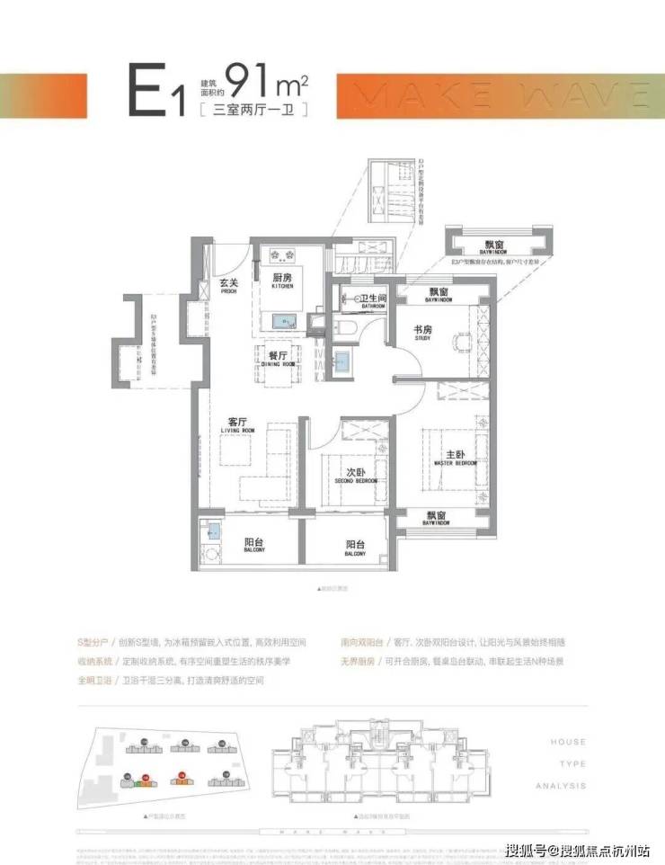 “南向双阳台+南北双飘窗”,构筑真3房户型!