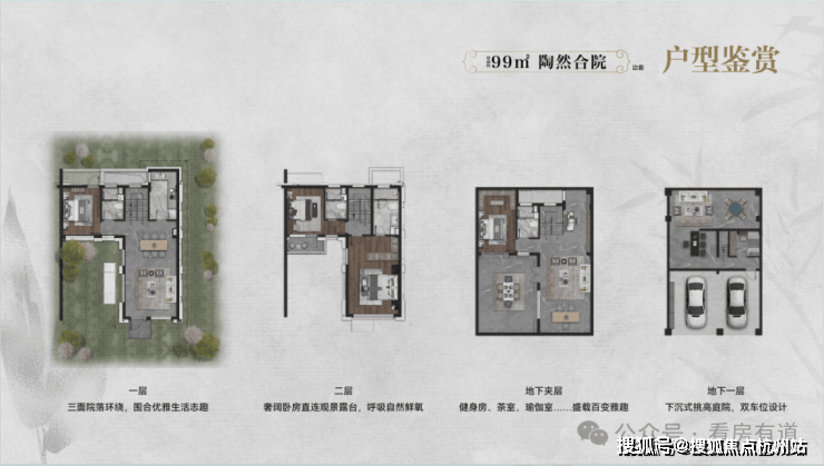 约99㎡合院产品做到了地上2层,地下室挑高5.5米。