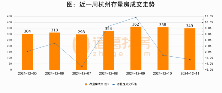【杭州成交日报】12月11日新房成交269套、二手房349套;涨价房源30套