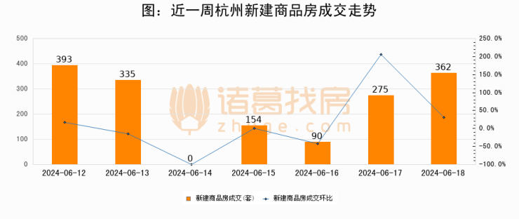 【杭州成交日报】06月18日新房成交362套、二手房271套;涨价房源112套