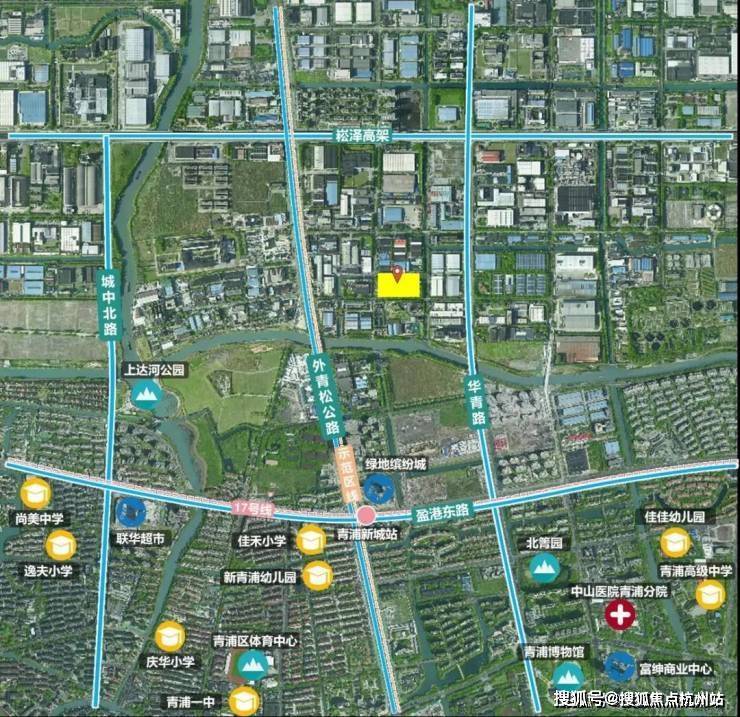 地块距轨道交通17号线青浦新城站1公里,周边拥有崧泽高架、外青松公路、华青路、城中北路、盈港东路等快速路。
