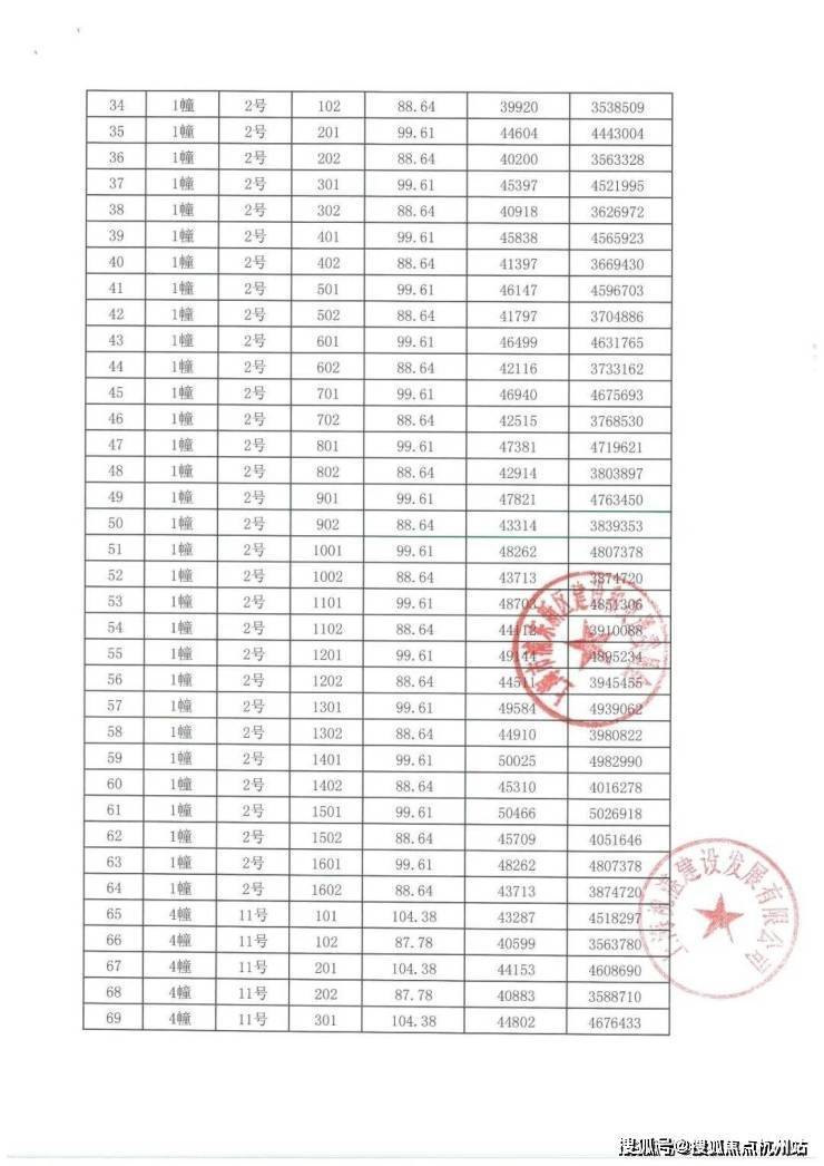 项目一房一价表