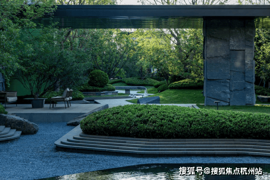 第三进——艺术造景 :经过回廊转角,江南女子意境的雕塑和孤植,达到移步异景的归家体验。